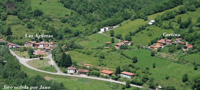 Las Agüeras se encuentra a 38 kms de Oviedo. A cien metros, por el camino hormigonado que parte detras de la Iglesia, encontramos Cortina. En el mapa Google, al pie de la foto, puedes calcular tu ruta.